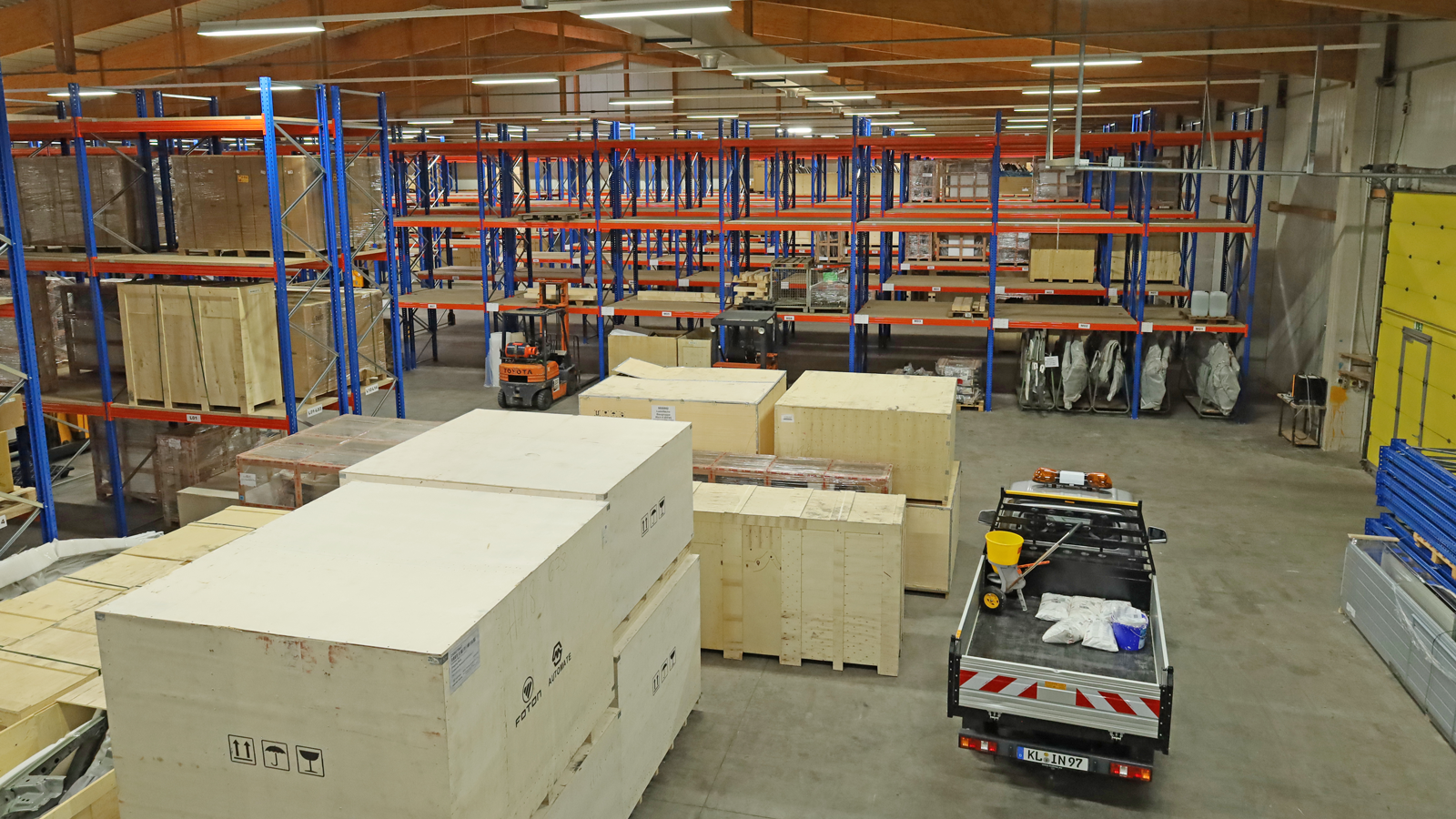 Ein Schwerpunkt liegt dabei auf der Erweiterung der Lager- und Verkehrsflächen sowie der Optimierung der internen Abläufe. Zusätzliche Abstellflächen für Neu- und Lagerfahrzeuge, angepasste Verkehrsführung für Speditionen und eine verbesserte technische Infrastruktur sorgen dafür, dass höhere Fahrzeugvolumina effizient abgewickelt werden können. Im Aftersales-Bereich werden Regallager und Kommissionierflächen für Ersatzteile, Verschleißteile und fahrzeugspezifisches Zubehör erweitert. Ziel ist eine hohe Warenverfügbarkeit und kurze Lieferzeiten, damit Werkstätten Reparaturen planbar durchführen können.